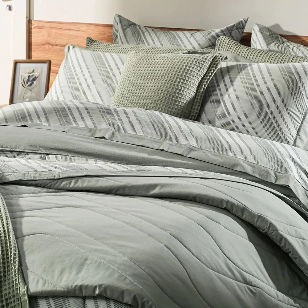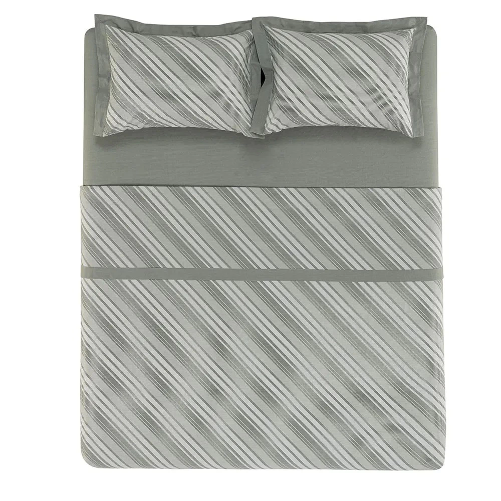 Confeccionado em 100% algodão 200 fios, o Jogo de Cama Becker Casal traz o equilíbrio perfeito entre conforto e sofisticação. Com um toque encorpado e altamente respirável, é hipoalergênico e possui tecnologia antipilling, garantindo beleza e durabilidade por muito mais tempo. O jogo é composto por um sobre lençol estampado de 2,20m x 2,50m com dobra aplicada de 5cm, um lençol com elástico de 1,38m x 1,88m x 35cm e fronhas 50cm x 70cm com acabamento de 3 abas de 5cm com estampa do lençol, proporcionando um visual impecável. A delicada tonalidade cinza confere versatilidade e um charme discreto que harmoniza facilmente com diferentes estilos de decoração. Combine com a colcha da mesma linha para um ambiente ainda mais acolhedor.