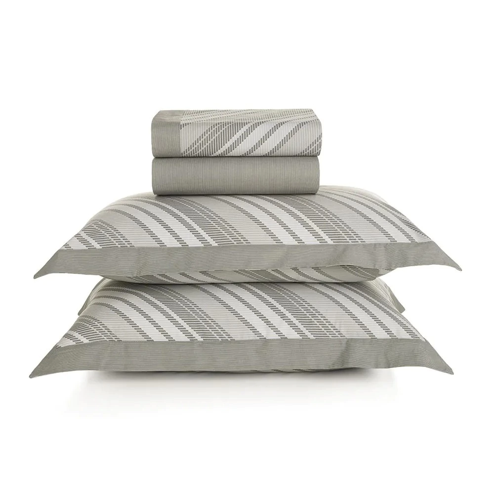 Confeccionado em 100% algodão 200 fios, o Jogo de Cama Becker King traz o equilíbrio perfeito entre conforto e sofisticação. Com um toque encorpado e altamente respirável, é hipoalergênico e possui tecnologia antipilling, garantindo beleza e durabilidade por muito mais tempo. O jogo é composto por um sobre lençol estampado de 2,90m x 2,50m com dobra aplicada de 5cm, um lençol com elástico de 1,93m x 2,03m x 40cm e fronhas 50cm x 70cm com acabamento de 3 abas de 5cm com estampa do lençol, proporcionando um visual impecável. A delicada tonalidade cinza confere versatilidade e um charme discreto que harmoniza facilmente com diferentes estilos de decoração. Combine com a colcha da mesma linha para um ambiente ainda mais acolhedor.