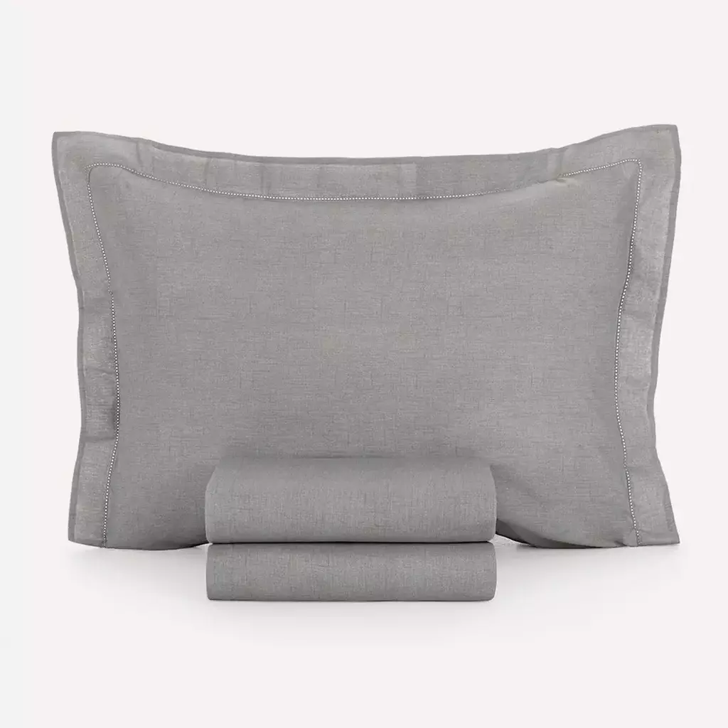 Tesso vem do latim texere, que significa “tecer”, e traduz o entrelaçamento que inspira este jogo de cama. Une a beleza que remete a tramas rústicas e naturais ao conforto do fio penteado, com detalhes refinados e delicadeza em cada toque. O diferencial fica por conta do acabamento em ponto ajour nas fronhas, que adiciona charme artesanal. Disponível em tons neutros e elegantes — marinho, cinza e bege — é ideal para composições minimalistas e contemporâneas.