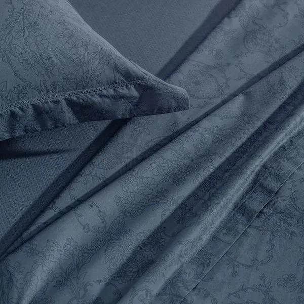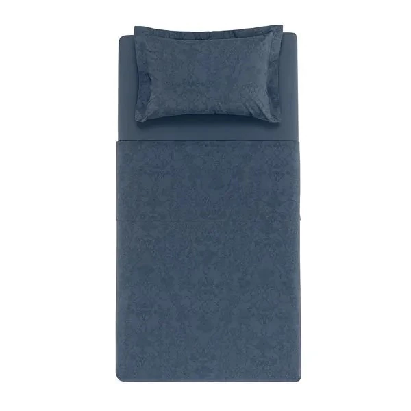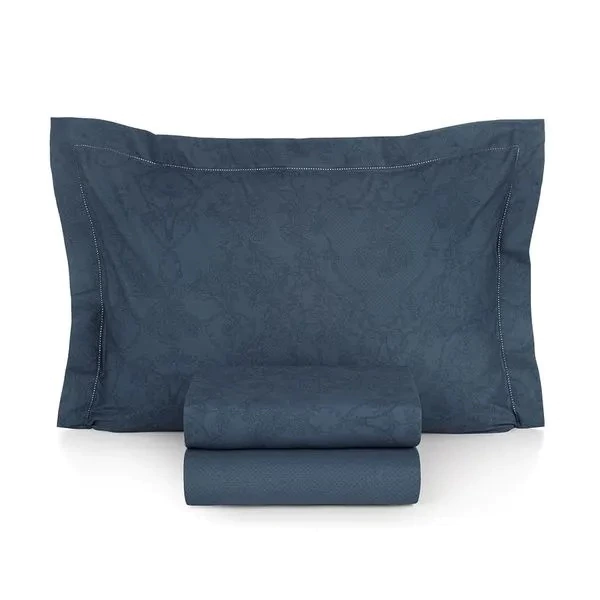 O Jogo de Cama Solteiro Catena, é perfeito para noites aconchegantes. Feito em 100% algodão e 200 fios, oferece um toque encorpado e macio, sendo altamente respirável, antipilling e hipoalergênico. O jogo completo, é estampado em base tinta, que dá aos produtos um brilho prolongado. Este jogo é composto por sobre lençol tinto com estampado floral azul de 1,80m x 2,50m com dobra feita, lençol com elástico com micro estampa e medida de 1,00m x 2,00m x 35cm e 1 fronha 50cm x 70cm com três abas de 5cm e ponto ajour com a mesma estampa do sobre lençol, todas as peças tem um lindo fundo azul marinho. Sofisticação e conforto em cada detalhe, compondo perfeitamente com a linha de colcha e edredom Catena e também com jogos marinhos lisos . Transforme seu quarto com a qualidade Karsten!
