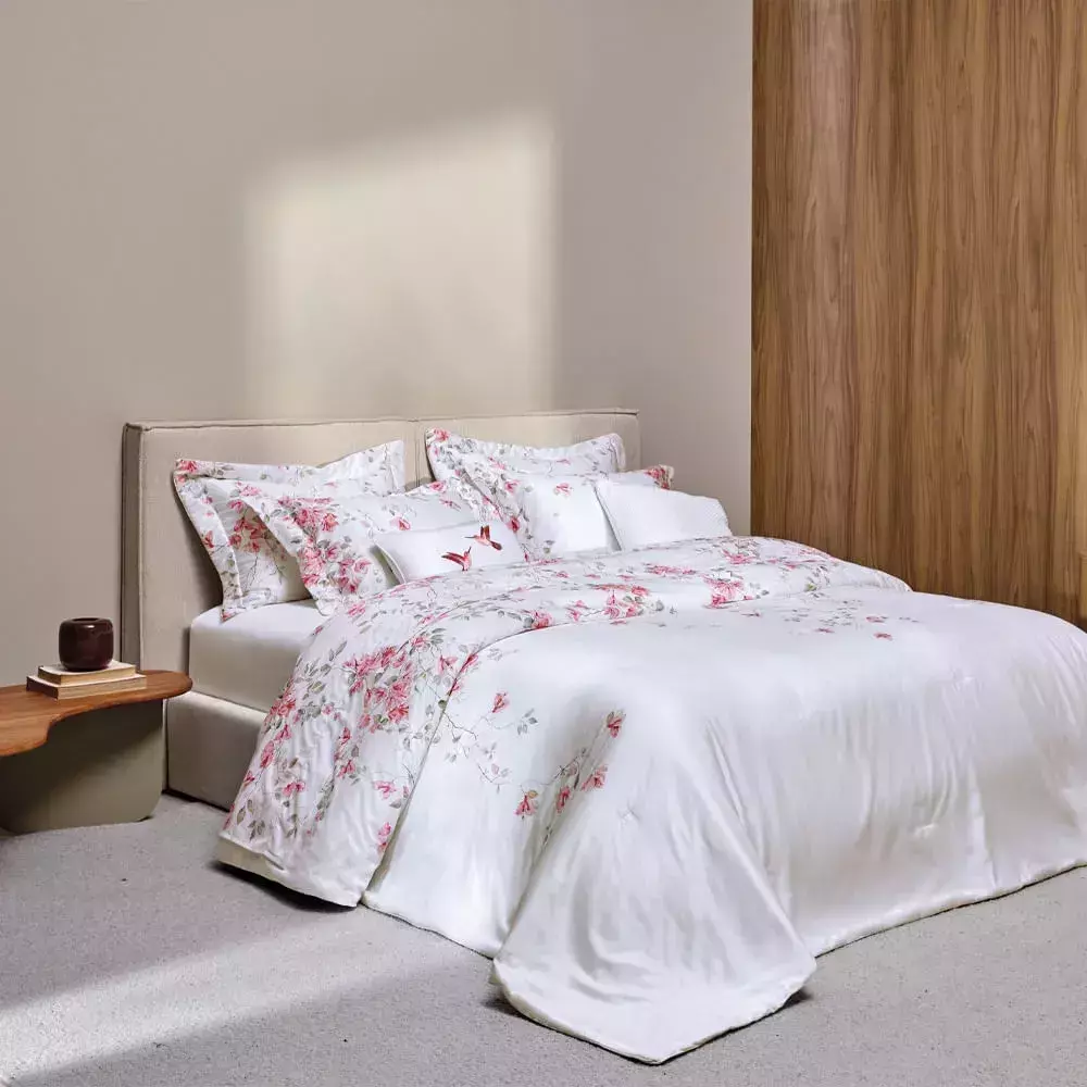O Jogo de Colcha Queen, Venere, confeccionado em cetim 300 fios e 100% algodão egípcio, é um mergulho à exuberância da natureza de Cinque Terre. A estamparia digital captura a beleza das bougainvílias que adornam as paredes e terraços da costa italiana, com uma fluidez floral pintada à mão em pinceladas de aquarela. A colcha e o porta-travesseiro apresentam uma estampa dimensionada, realçada por um sofisticado acabamento em cordonê. Este design vibrante e convidativo traz para o seu ambiente a sensação envolvente e fresca de um jardim, transformando seu espaço em um refúgio de elegância natural.