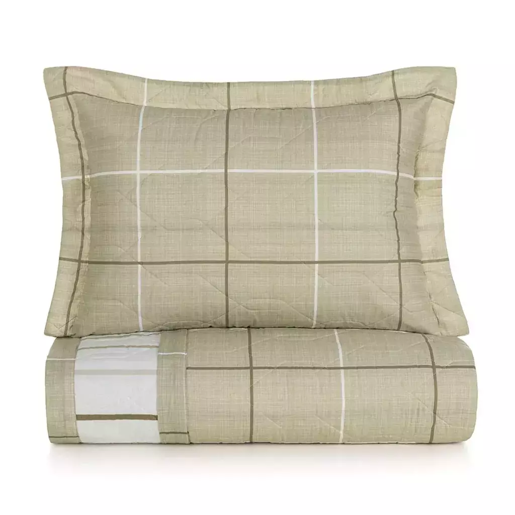 Transforme o quarto em um ambiente sofisticado e confortável com o Jogo de Colcha Santiago King com medidas 2,80m x 2,55m. Produzido em 100% algodão 160 fios, este conjunto une qualidade e estilo, garantindo um toque macio. Sua composição é altamente respirável, hipoalergênica, antipilling e encorpada, ideal para proporcionar noites de descanso perfeitas. A colcha dupla face apresenta cantos quadrados e uma combinação harmoniosa de cores branco e verde, trazendo elegância ao ambiente. Os porta-travesseiros de 50cm x 70cm complementam o conjunto com três abas de 5 cm, garantindo acabamento impecável. Para um visual ainda mais sofisticado, combine com peças da mesma linha ou em tons semelhantes.