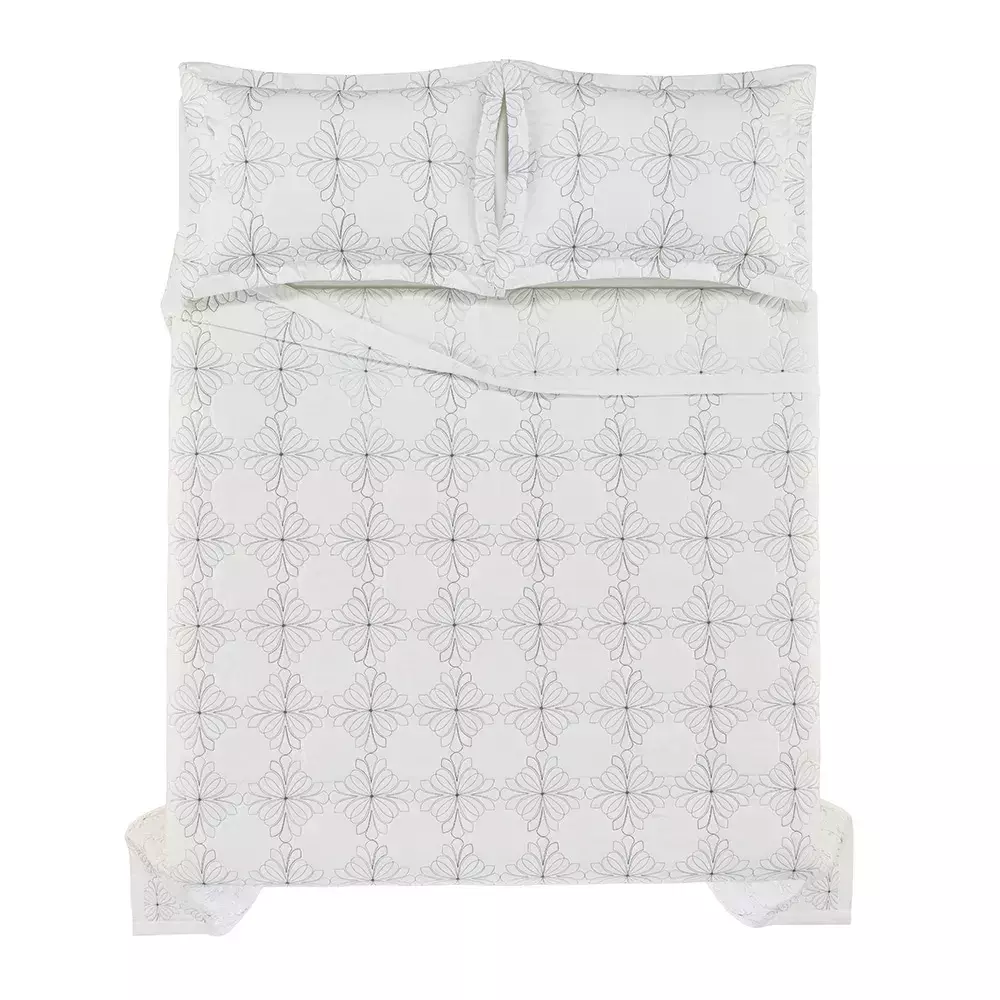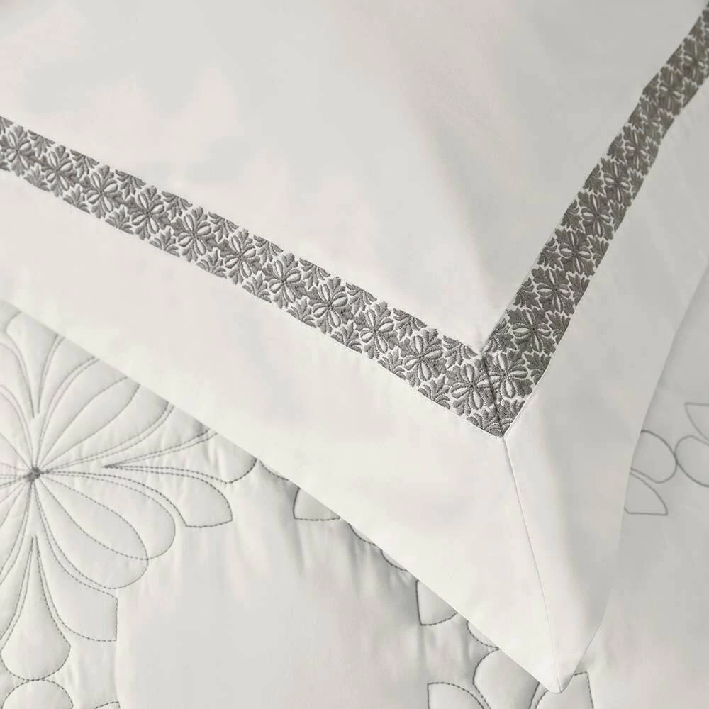 O Cobre Leito Trussardi Ravizza é puro requinte com um belo toque artístico, com tons sóbrios e os seus bordados perfeitamente desenhados em forma de mosaicos, é um verdadeiro convite de apreciação e aconchego, assim como o piso da Duomo di Milano. Sua confecção é em 100% Algodão, Percal 200 fios, tecido sanforizado e mercerizado. O Percal promove maior ventilação e frescor, traz mais vivacidade a cor, possui acabamento fosco e caimento encorpado. Encanta pelo toque de brilho e por seu caimento suave e macio. Acompanha Porta Travesseiros.