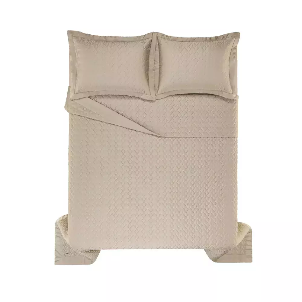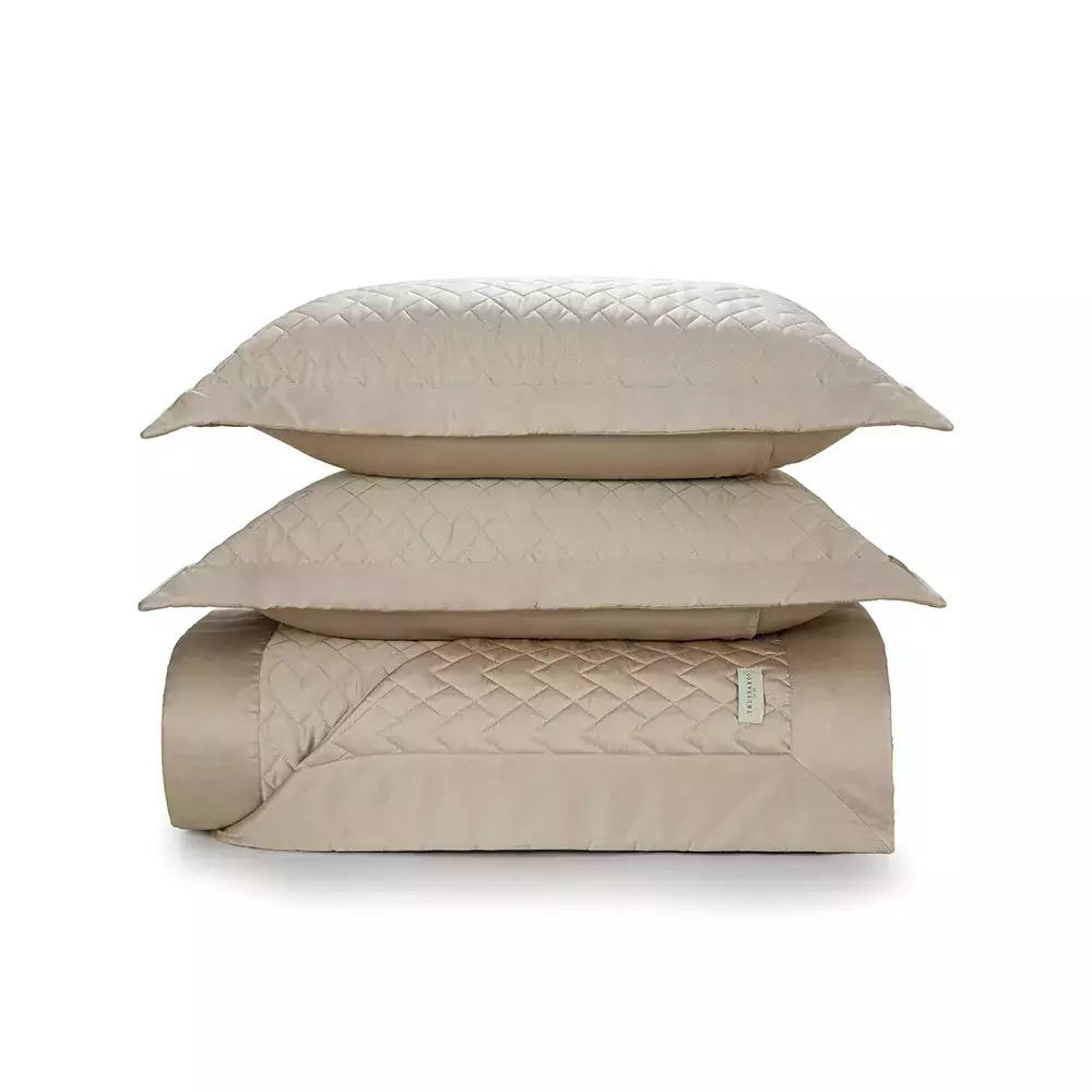 A Inspiração vem do estilo Italiano, que possui elegância natural e é rico nos detalhes. Contém 1 colcha matelassada com bordo de 10cm e 2 portas travesseiros com 4 abas de 5cm, trazendo o acabamento perfeito para a cama. A Cama Spiazzo em cetim 300 fios, se inspira no estilo autentico dos italianos, traz cores clássicas, compondo uma cama delicada e imponente com os demais itens da coleção.