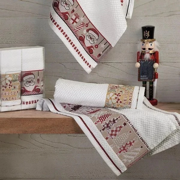 O Kit de Panos de Copa Festivos Karsten em tamanho 46cm x 65cm, é um lindo kit preparado com carinho para presentear. Possui 3 toalhas bordadas com temas natalinos para acompanhar na época mais linda do ano com um material de ótima absorção e durabilidade superior. Conheça a linha de natal com toalhas de lavabo e guardanapos exclusivos e renove seu lar com charme e sofisticação.